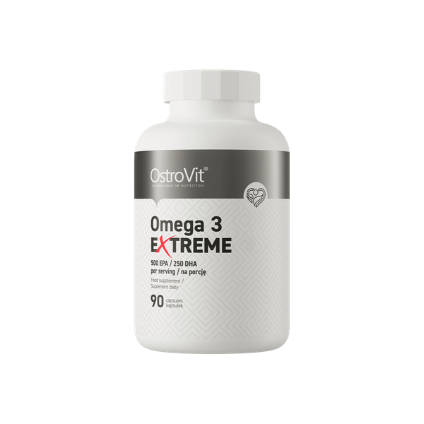 OstroVit Omega 3 Extreme 90 caps zdrav je dodatak prehrani na bazi ribljeg ulja. Sadrži omega-3 masne kiseline koje podržavaju rad srca i mozga te jačaju krvne žile. EPA i DHA pozitivno utječu na mentalne funkcije, poboljšavaju procese pamćenja, fokus i koncentraciju.